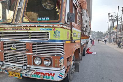 नौबस्ता हाईवे के धांसू कुआं के पास बाइक सवार महिला की मौत।
