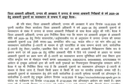 आज दिनांक 16.02.2025 को जिलाधिकारी महोदय उन्नाव द्वारा पुलिस अधीक्षक उन्नाव के…