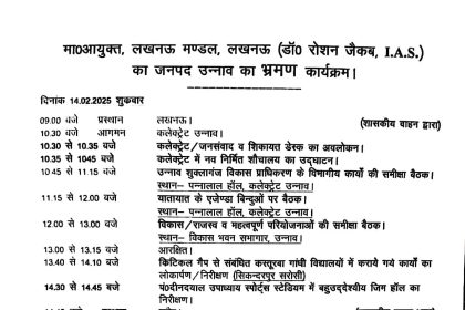 *उन्नाव।* मंडलायुक्त रोशन जैकब ( लखनऊ) का कल 14 फरवरी को होगा…