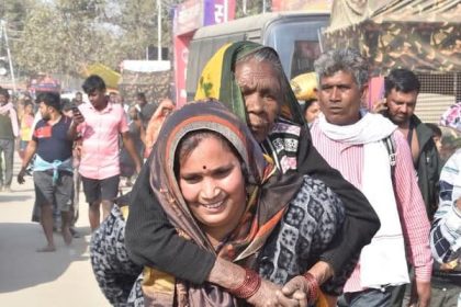 कुंभ की एक तस्वीर यह भी सास की इच्छा महाकुम्भ में स्नान…