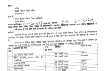 *उत्तर प्रदेश- परिषदीय स्कूलों के लिए अवकाश तालिका हुई जारी । मोहित…