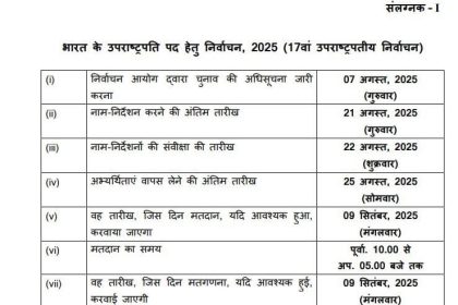 उपराष्ट्रपति चुनाव की तिथियां घोषित…