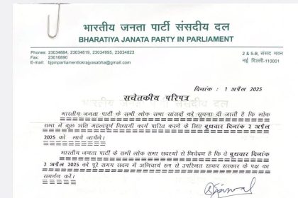 दिल्ली - भाजपा ने सभी लोकसभा सांसदों के लिए व्हिप जारी किया…
