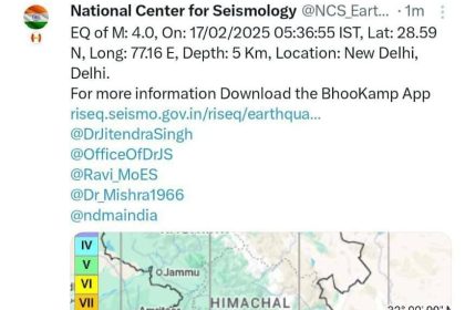*भूकम्प* आज सोमवार (17 फरवरी) की सुबह दिल्ली-एनसीआर सहित पूरे उत्तर भारत…