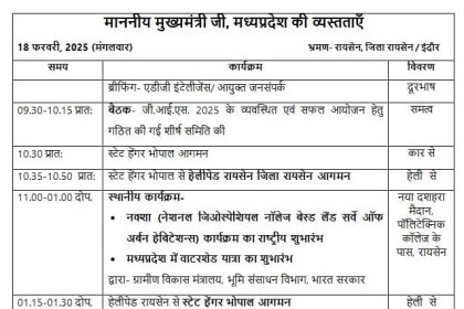 *ब्रेकिंग भोपाल* *मुख्यमंत्री डॉ मोहन यादव के आज के कार्यक्रम* *जिला रायसेन…