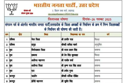 भारतीय जनता पार्टी उत्तर प्रदेश के प्रदेश चुनाव अधिकारी एवं पूर्व केंद्रीय…