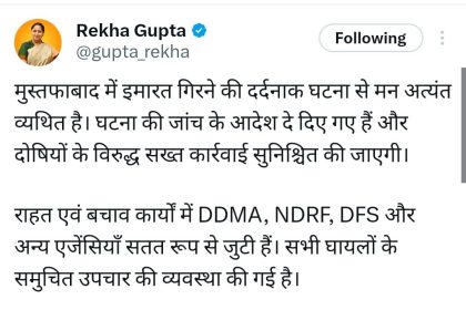 दिल्ली- मुख्यमंत्री रेखा गुप्ता ने एक्स पर किया पोस्ट.. मुस्तफाबाद की दर्दनाक…