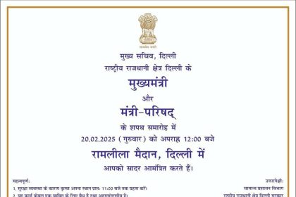 दिल्ली सीएम के लिए शपथ ग्रहण समारोह का निमंत्रण. ब्यूरो रिपोर्ट