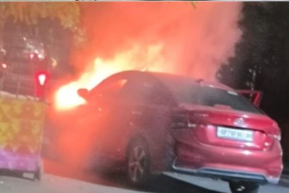 कानपुर ब्रेकिंग आग का गोला बनी सड़क पर दौड़ती हुई कार. मामला…