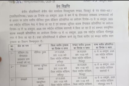 *हमीरपुर : जिला स्तर पर खेल प्रतिभाओं के चयन ट्रायल 7 अक्टूबर…