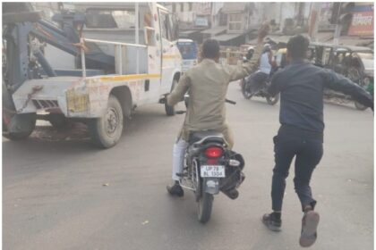 *कानपुर न्यूज* *ट्रैफिक क्रेन कर्मचारी द्वारा बाइक सवार को दौड़कर रोकता हुआ…