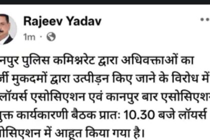 कानपुर:उत्तर प्रदेश* कानपुर कमिश्नरेट के सेंट्रल जोन के नवाबगंज थाना क्षेत्र में रहने वाले चर्चित अधिवक्ता सोनभद्र जेल में बंद एडवोकेट दीनू उपाध्याय