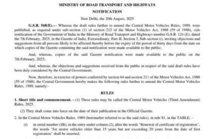 * सरकार ने वाहनों की पंजीयन वैधता 15 साल से बढ़ाकर अब…