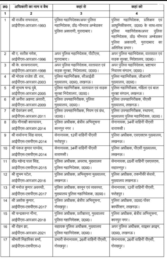 * लखनऊ : UP में 28 IPS अफसरों के ट्रांसफर।*