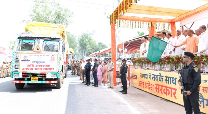 #UPCM योगी आदित्यनाथ ने आज सहारनपुर में पंजाब, हिमाचल प्रदेश एवं उत्तराखण्ड के बाढ़ पीड़ितों हेतु राहत सामग्री वाहनों को फ्लैग ऑफ किया।