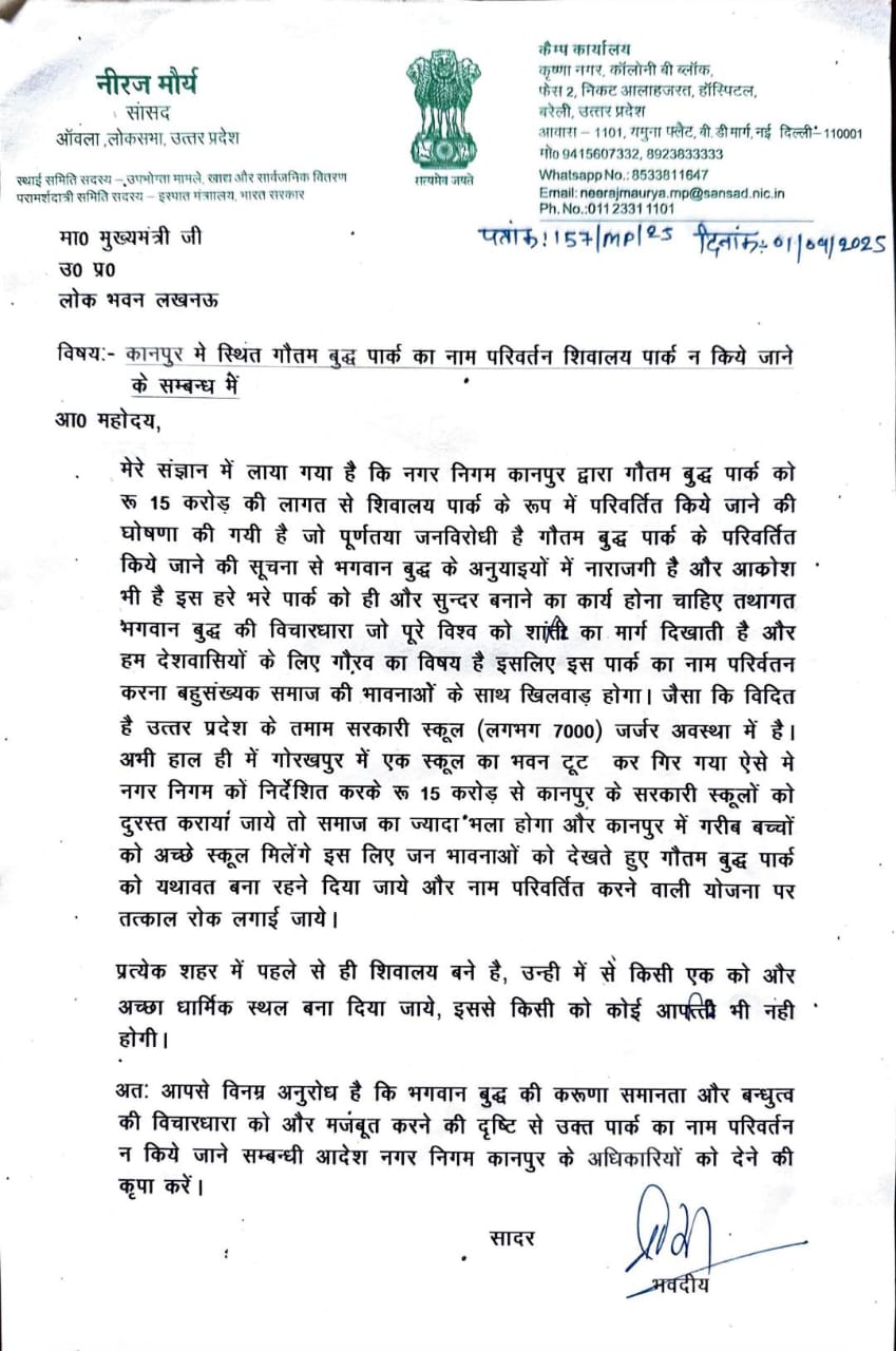 *बड़ी खबर* कानपुर - गौतम बुद्ध पार्क का नाम बदलने पर विवाद कानपुर नगर निगम ने गौतम बुद्ध पार्क का नाम बदलकर "शिवालय पार्क" करने की घोषणा की इस फैसले…