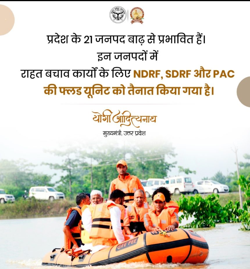 विगत 10-15 दिनों में अत्यधिक वर्षा के कारण उत्तर प्रदेश के 21 जनपद बाढ़ से प्रभावित हुए हैं।