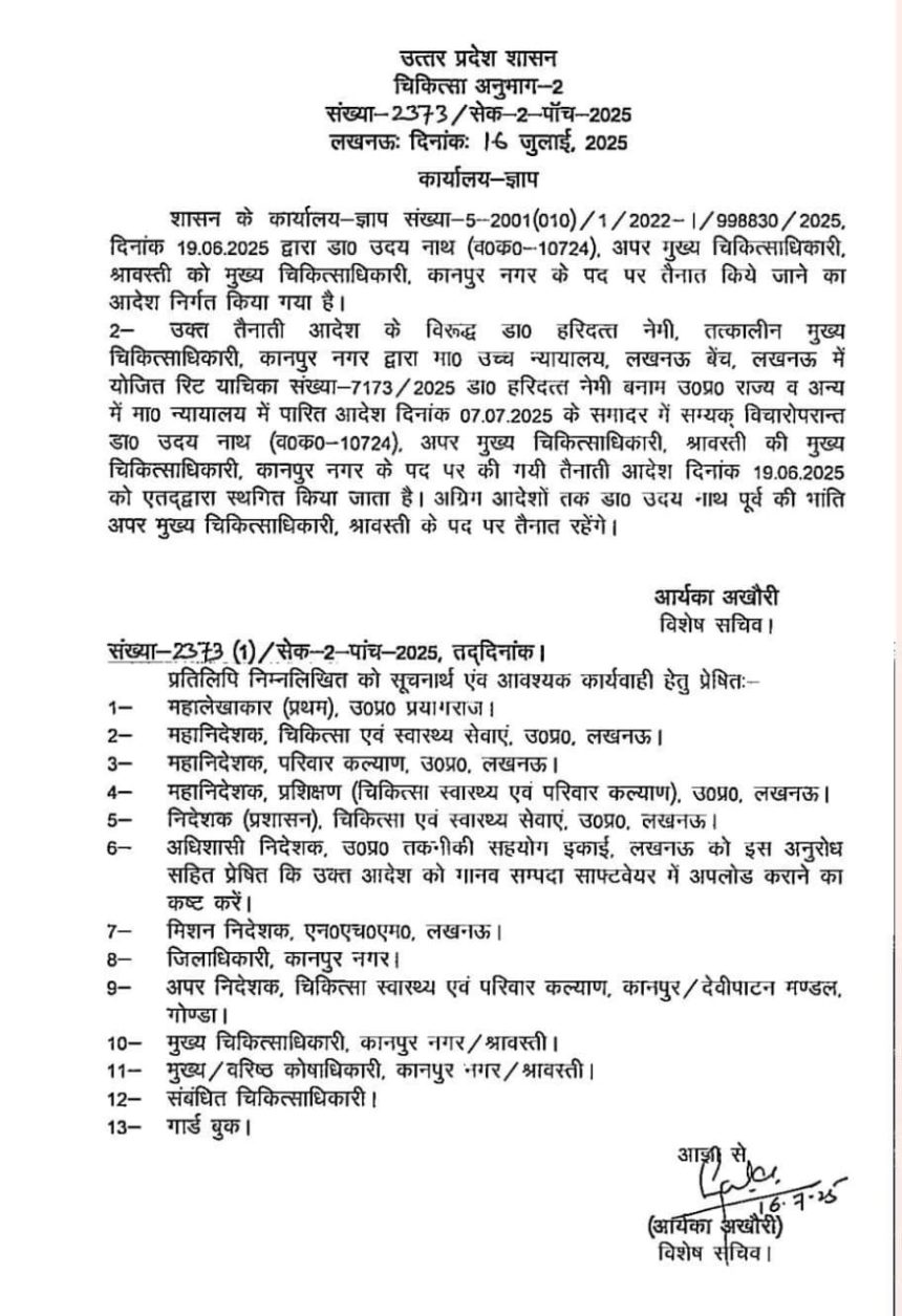 कानपुर ब्रेकिंग कानपुर के सीएमओ डॉ उदय नाथ हटाए गए