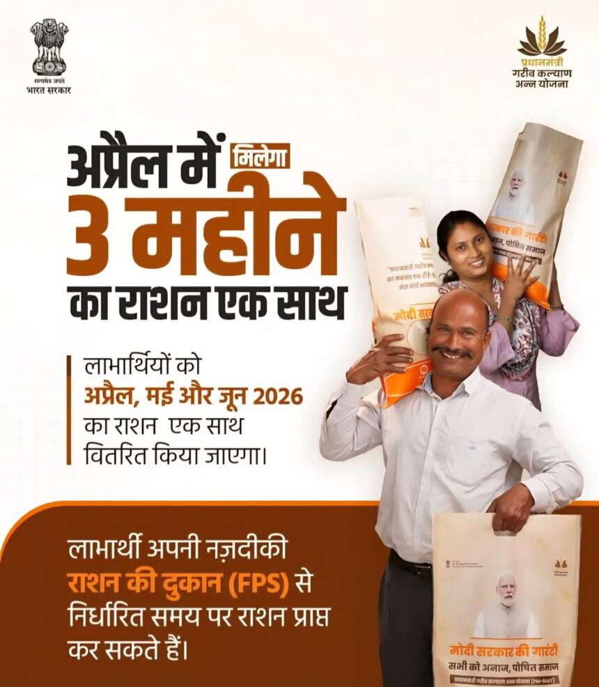 *अप्रैल माह में 3 महीने का राशन एक साथ उपलब्ध कराया जा रहा है* - सुविधाजनक और व्यवस्थित वितरण के लिए एक साथ राशन उपलब्ध कराया जा रहा हे, -…