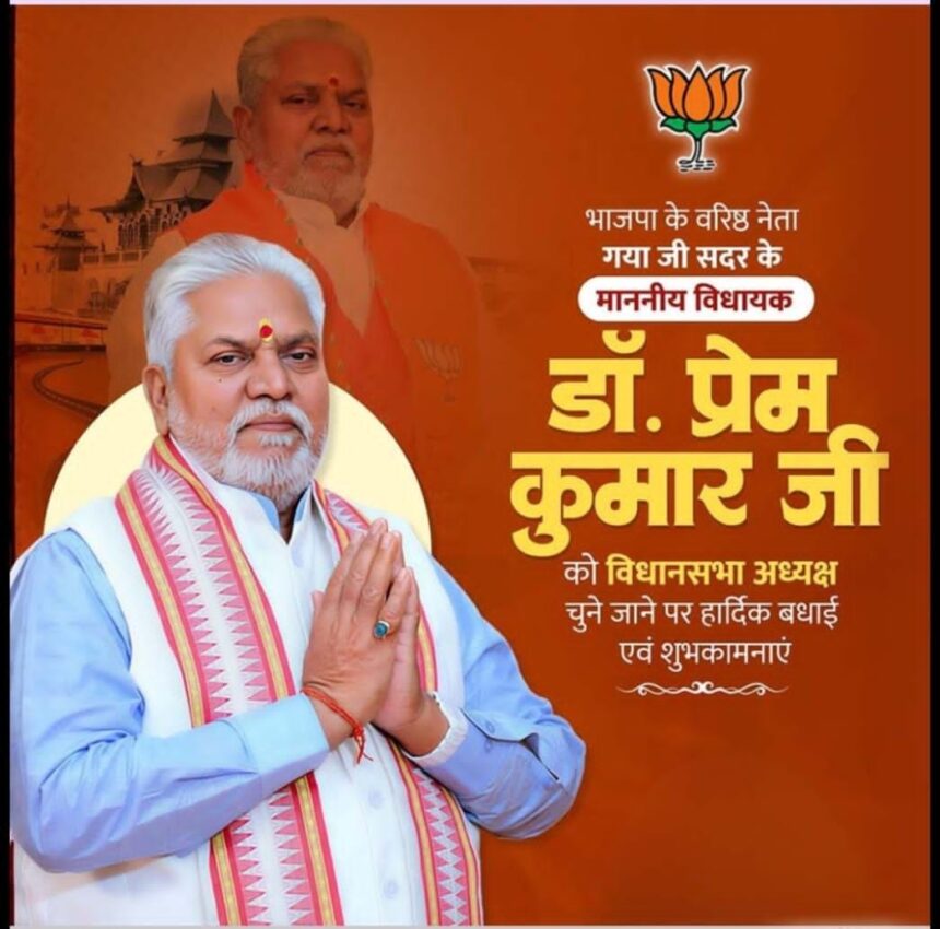 डॉ. प्रेम कुमार जी को बिहार विधान सभा के अध्यक्ष पद की जिम्मेदारी सँभालने पर हार्दिक शुभकामनाएँ
