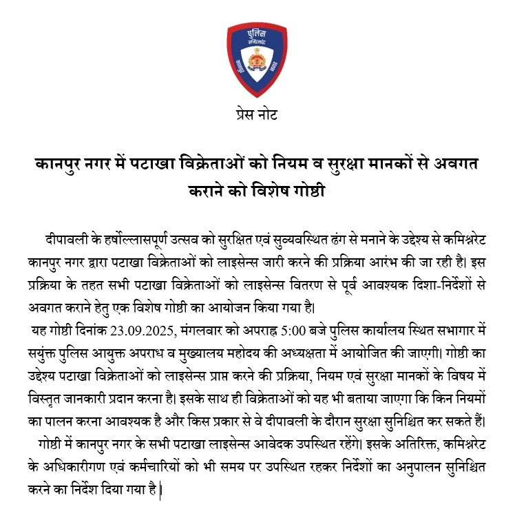 कानपुर नगर में पटाखा विक्रेताओं को नियम व सुरक्षा क में विशेष गोष्ठी